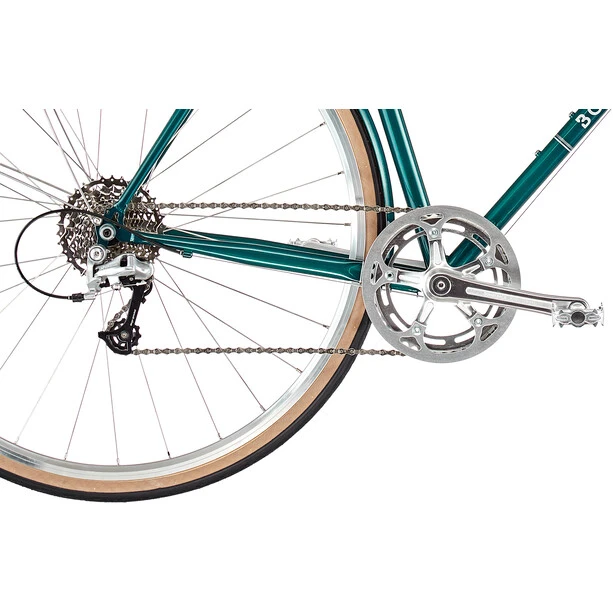 Un style classique associé aux meilleures manières modernes. Basé sur un simple cadre en acier, l’Oxbridge Geared sera aussi pertinent dans une décennie qu’il l’est aujourd’hui. Dotée de robustes tubes de changement de vitesse, sa transmission à 9 vitesses, facile d’entretien, est complétée par une large cassette pour faciliter votre ascension. Des caractéristiques contemporaines telles que les freins à étrier doublement articulés et les pneus larges 28C offrent également le meilleur de la technologie moderne. Des moyeux étanches et durables et une peinture métallique profonde complètent un vélo de route aussi polyvalent qu’intemporel.