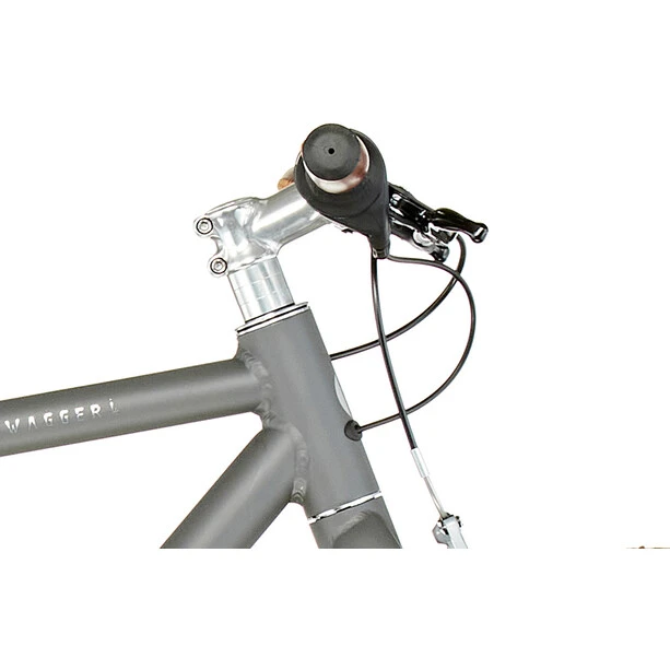 Selle et poignées dans le meilleur aspect classique du cuir, un gris sportif comme couleur ainsi qu’un design naked très tendance : Le Swagger fait définitivement bonne impression dans la City. Comme son nom l’indique, le vélo de ville est chic à mourir. Avec le dérailleur SHIMANO à 7 vitesses avec roue libre et un poids de 13 kg, on avance tout à fait rapidement.