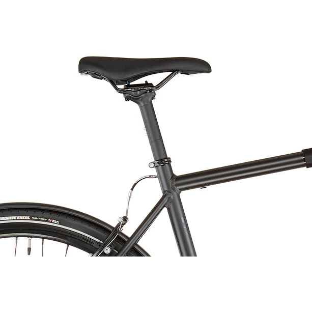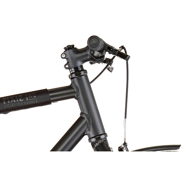 L’exemple donné depuis des années sur les s’impose peu à peu sur les vélos à pneus plus étroits. Chez Fixie Inc. Backspin, un tube supérieur plus long combiné à une potence plus courte assure une meilleure stabilité à des vitesses plus élevées. La maniabilité du vélo est ainsi préservée grâce à la potence courte. Tu bénéficies ainsi d’une grande fluidité, mais tu peux aussi zigzaguer sans trop d’efforts dans les virages serrés.
