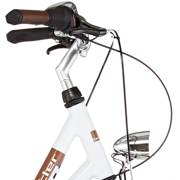 Le Summerfield apporte un peu de fraîcheur estivale dans la gamme Ortler, habituellement marquée par une certaine retenue visuelle. La qualité typique n’a pas été négligée, ni pour le cadre bas aux courbes élégantes, ni pour l’équipement. Et pourtant, le Summerfield à 7 vitesses offre un plaisir extrême dans sa catégorie de prix. Le pédalage confortable est la discipline de prédilection de ce vélo de ville stylé – et non la course de vitesse. En position assise droite avec une bonne visibilité dans le trafic urbain, on roule souverainement sur les chemins stabilisés et non stabilisés. Les pneus Schwalbe de 50 mm de large montés sur les roues de 28 pouces sont non seulement très esthétiques, mais ils offrent également une meilleure absorption des chocs que les pneus plus étroits, et sont parfaitement complétés par la selle à suspensions adéquates. Le porte-bagages robuste et le grand protège-chaîne sont également peints dans la couleur du cadre. Un éclairage fixe est alimenté par la dynamo de moyeu de la roue avant. Le moyeu à 7 vitesses offre des changements de vitesse presque sans entretien sur une longue durée. Les freins V-brake à l’avant et à l’arrière ainsi qu’un rétropédalage supplémentaire ralentissent toujours le Summerfield en toute sécurité. Béquille latérale, sonnette et autres accessoires complètent la fonctionnalité du vélo plaisir d’Ortler. L’aspect exclusif de toutes les pièces rapportées parle de lui-même et trouvera à coup sûr de nombreux admirateurs.