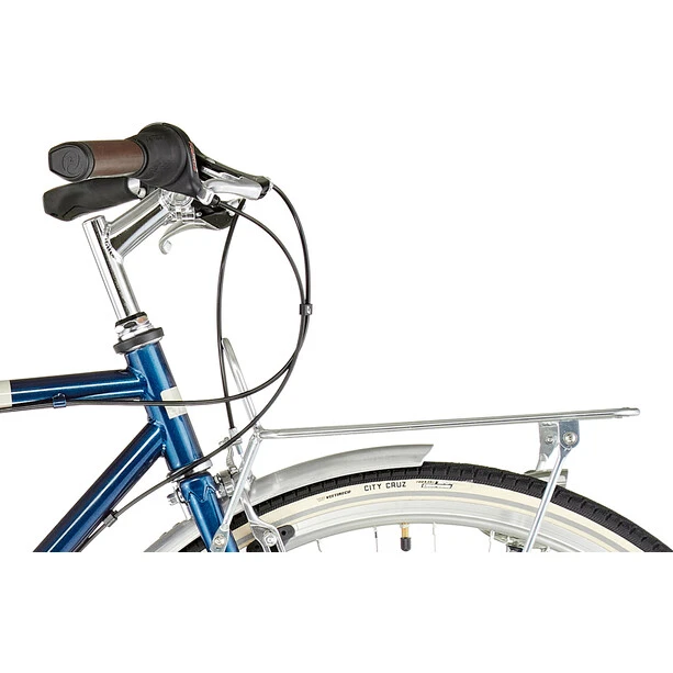 À l’époque, les vélos porteurs avec porte-bagages avant stable étaient de véritables bêtes de somme quotidiennes à une époque où tous les ménages n’avaient pas de voiture. Avec le Bricktown, Ortler poursuit le concept d’une nouvelle manière et propose aux cyclistes urbains cette machine à rouler pratique et élégante avec des emprunts classiques dans le design, afin d’opter pour le vélo et la piste cyclable en toute confiance et avec un style sûr en ville. Le conducteur ou la conductrice prend place confortablement sur la selle, garde la vue d’ensemble et, avec 7 vitesses et un équipement routier complet, reste maître du flux de la circulation. La sacoche, le sac à dos ou les courses viennent à l’avant, restent toujours en vue et permettent une conduite libérée et rapide.