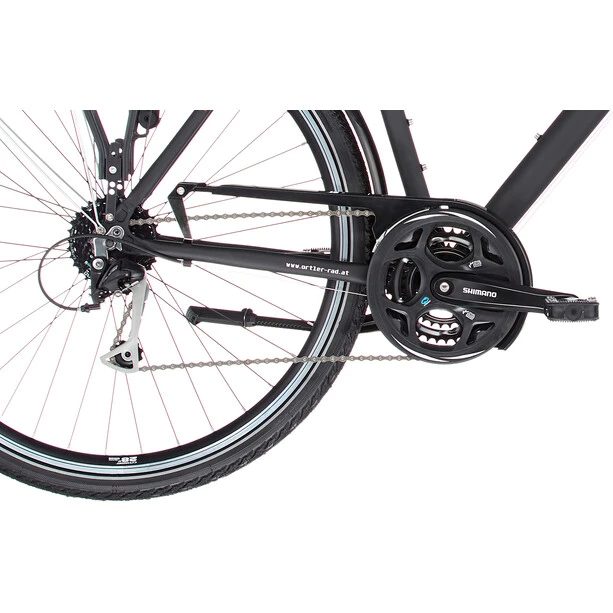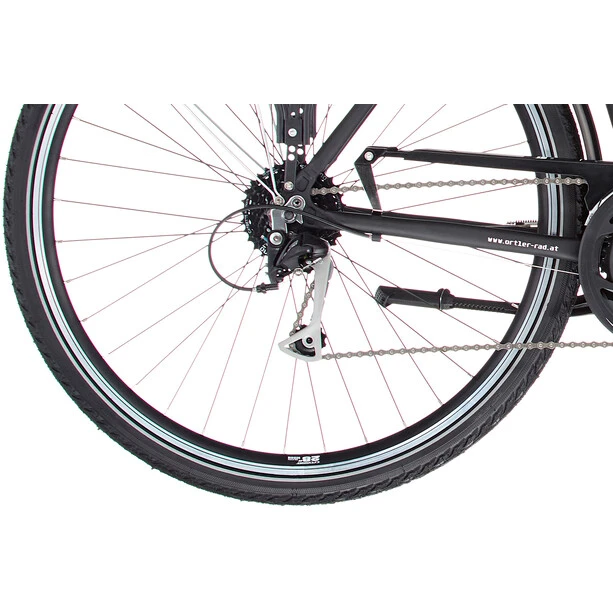 Outre son design noble et minimaliste, le cadre noir mat et peint par poudrage de l’Ortler Mainau attire immédiatement le regard. Le solide cadre en aluminium assure un faible poids et une grande durabilité. Grâce à la potence ajustable et au guidon ergonomique, la position assise peut être réglée individuellement.