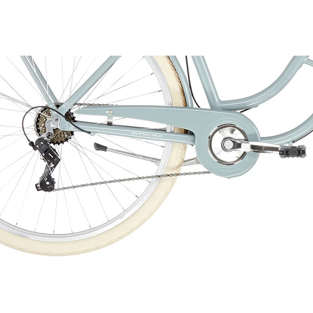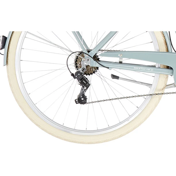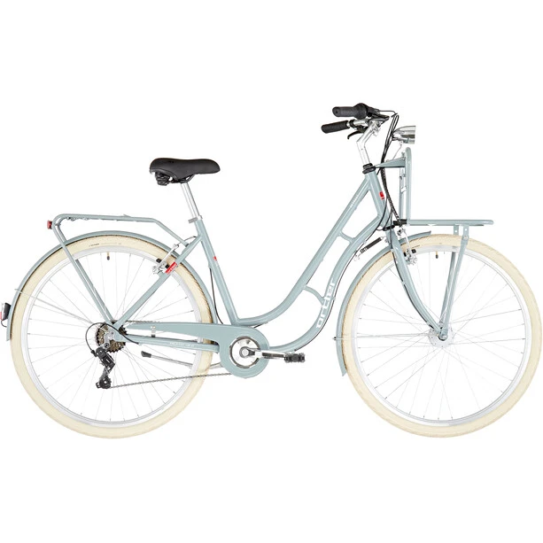 Le Detroit dispose d’un équipement complet pour la route, de jantes solides en aluminium et d’un roulement interne à cartouche sans entretien.Grâce à l’accès bas et à la grande plage de réglage du guidon et de la selle, les cyclistes de 1,55 m à 1,85 m se déplacent confortablement avec le cadre Ortler Detroit Unisize et un porte-bagages avant supplémentaire pour plus d’espace de rangement.