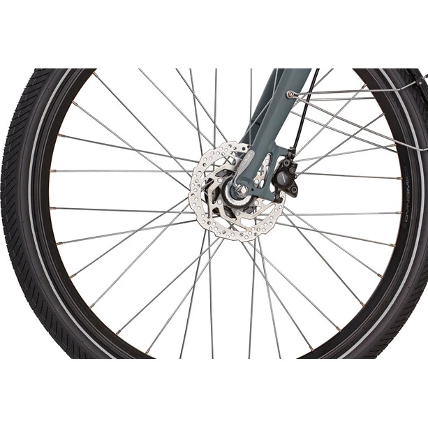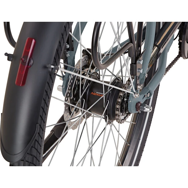 Vous profiterez du moyeu à vitesses intégrées SHIMANO NEXUS à 7 vitesses, en particulier si vous déplacez sur des parcours variés. Celle-ci peut être commandée très simplement à l’aide d’une poignée tournante située sur le guidon. Une dynamo de moyeu SHIMANO alimente l’éclairage LED. Le phare à détecteur et le feu arrière – tous deux avec fonction de feux de position – ainsi que les pneus réfléchissants anti-crevaison de Kenda garantissent à tout moment que vous voyez bien et que vous êtes vu. Vous pourrez ainsi profiter pleinement de votre trajet en toutes circonstances !