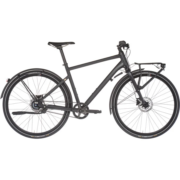 Le duo d’entraînement composé de la transmission par courroie Gates et du moyeu de roue libre Nexus à 8 vitesses de Shimano est particulièrement confortable et facile à entretenir. Combiné à un cadre en aluminium léger et rigide et à une fourche rigide, le TX7 Carry se présente comme un véritable poids plume malgré son équipement complet avec des freins Shimano BR-MT200, des garde-boue Wingee incluant avec support de sacoche et un système d’éclairage LED Busch & Müller.