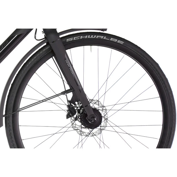 Le cadre en aluminium hydroformé et la fourche rigide en aluminium forment le Chasis, à la fois sportif et élégant, et contribuent à maintenir un poids total faible. Des freins à disque hydrauliques et un moyeu à 8 vitesses Shimano Nexus assurent des valeurs d’accélération et de décélération optimales sans perturber l’apparence soignée. La paire de roues à disque de 28 pouces, mince mais robuste, indique clairement à quelle vitesse l’Intention Urban préfère voyager. Les pneus Kojak de Schwalbe défient la notion même de vitesse. Que vous alliez à un rendez-vous au café, à une réunion au bureau ou à une conférence, avec ce sérieux, vous arriverez avant tout le monde et vous aurez déjà eu le temps de prendre un café.