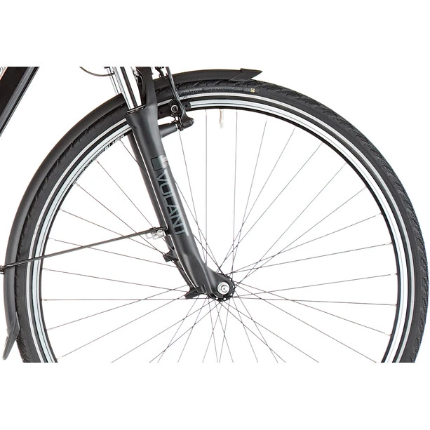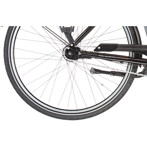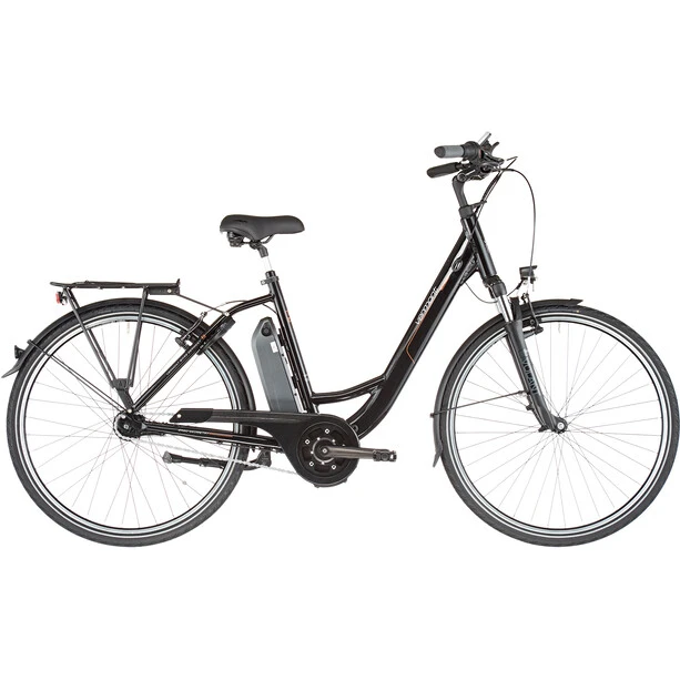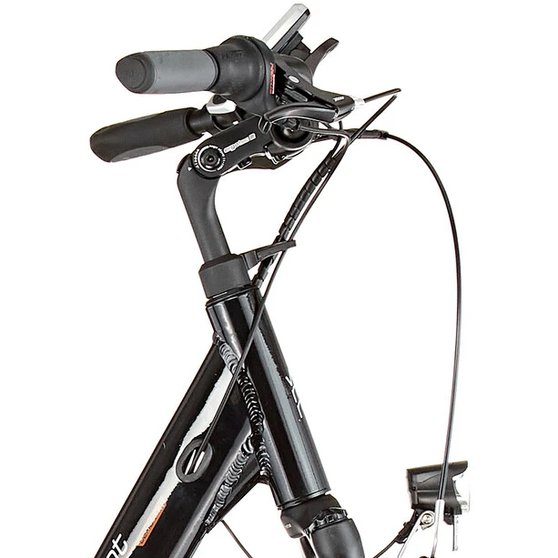 En plus de l’assistance électrique du moteur, Vermont a équipé le E-Jersey d’un moyeu Shimano Nexus à 7 vitesses et de puissants freins V sur les roues avant et arrière. De plus, il y a un équipement complet pour la route avec un système d’éclairage fixe, des protège-chaînes, des garde-boue, des béquilles latérales stables et des porte-bagages. La potence réglable, le guidon courbé et la selle confortable permettent de régler individuellement la position assise droite sur le vélo. Pour plus de confort et de sécurité, même à un rythme plus rapide, le Vermont E-Jersey est équipé d’une fourche à suspension et d’une tige de selle suspendue. Le confort. La vitesse et l’aptitude à l’usage quotidien vont de pair sur ce vélo de ville électrique à prix avantageux.